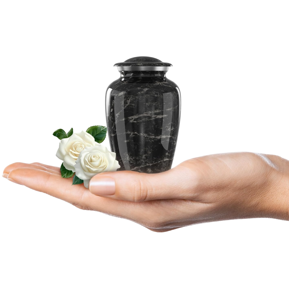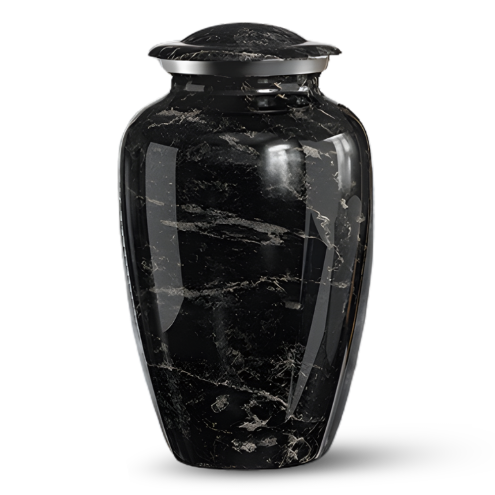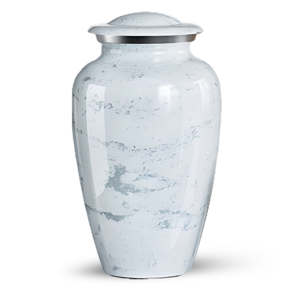 Designed to hold a full portion of ashes, offering a timeless and elegant tribute for your loved one. Available in White and Black marble.